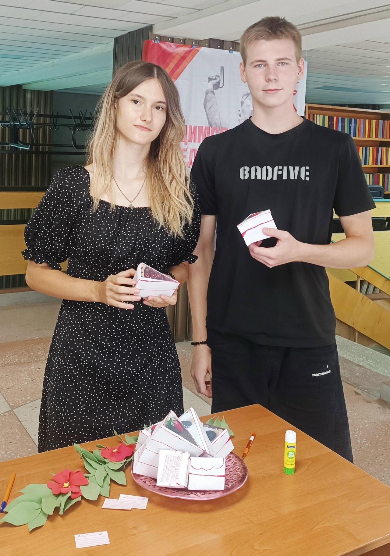 Особенностью мероприятия стало оформление библиоквилта в виде бумажных кусочков торта. На эти «кусочки» читатели приклеивали стикеры с написанными от руки пожеланиями. Такая необычная форма привлекла внимание посетителей библиотеки и сделала процесс выражения мыслей более интерактивным и запоминающимся.